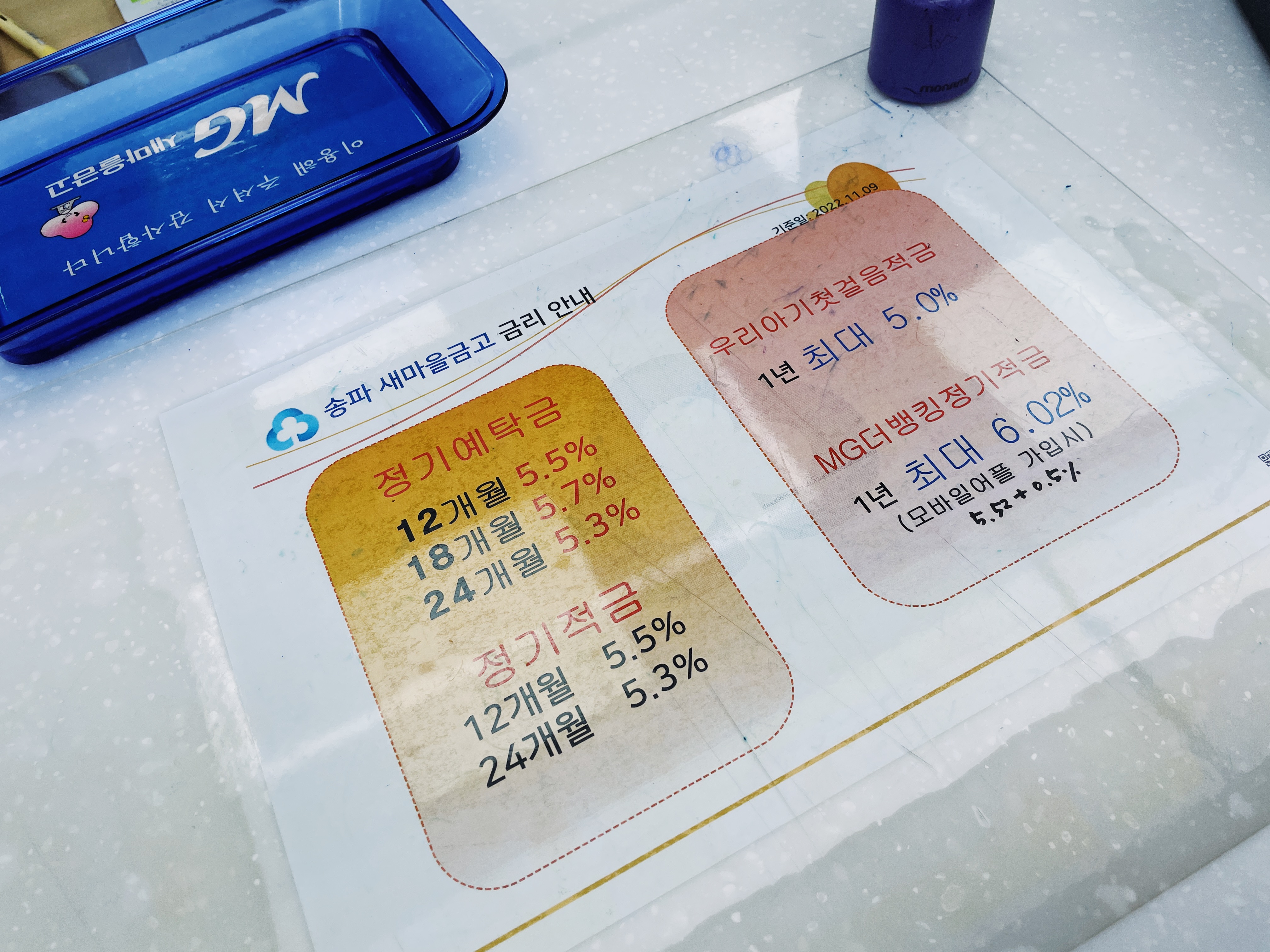 송파 새마을금고 금리 안내가 자리에 붙어있네요.