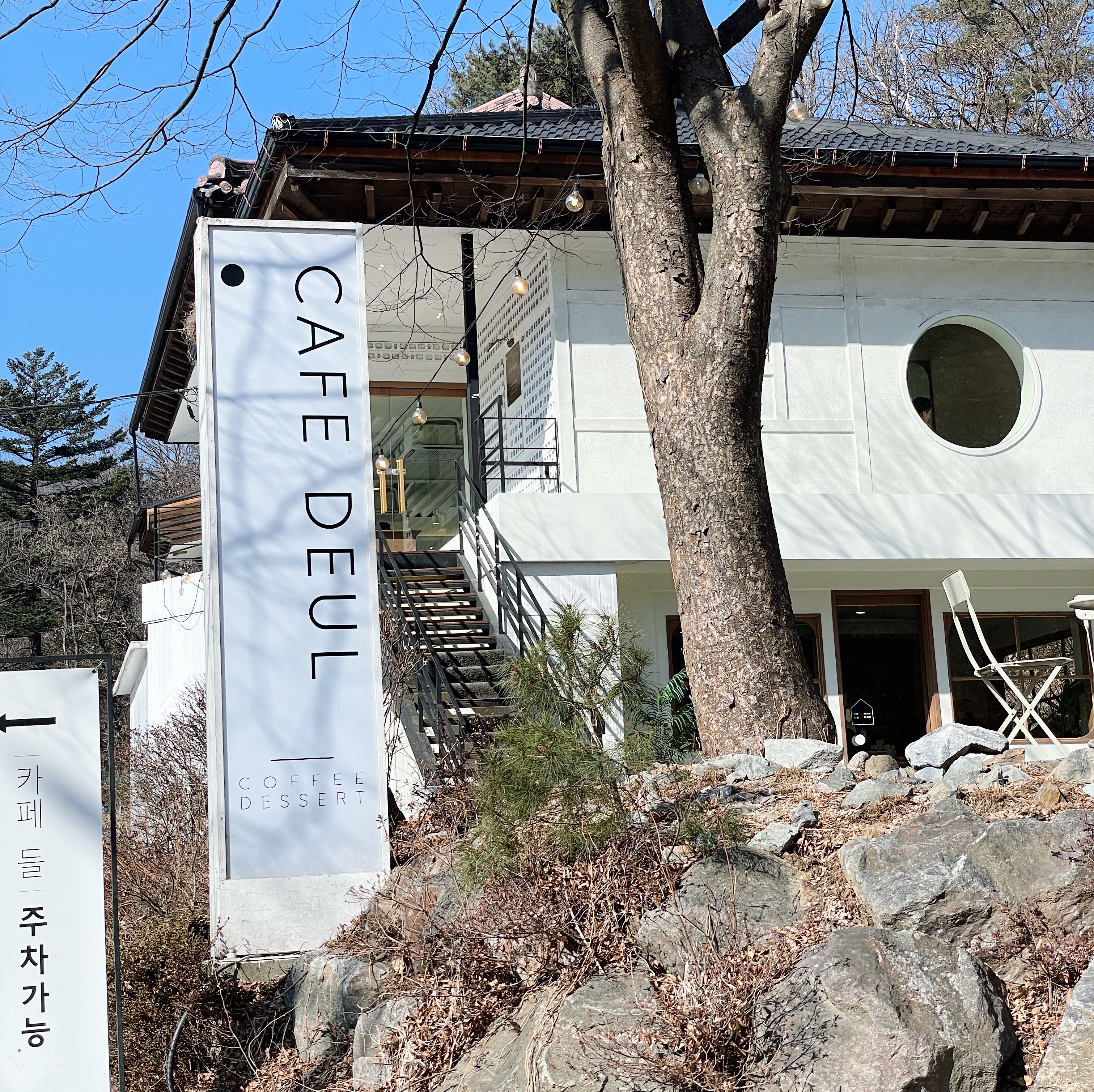 주말에도 주차하기 편하고, 카페와 닭백숙집 두 곳이 거리도 가까워서 밥 먹고 카페 가는 코스로 추천해요.