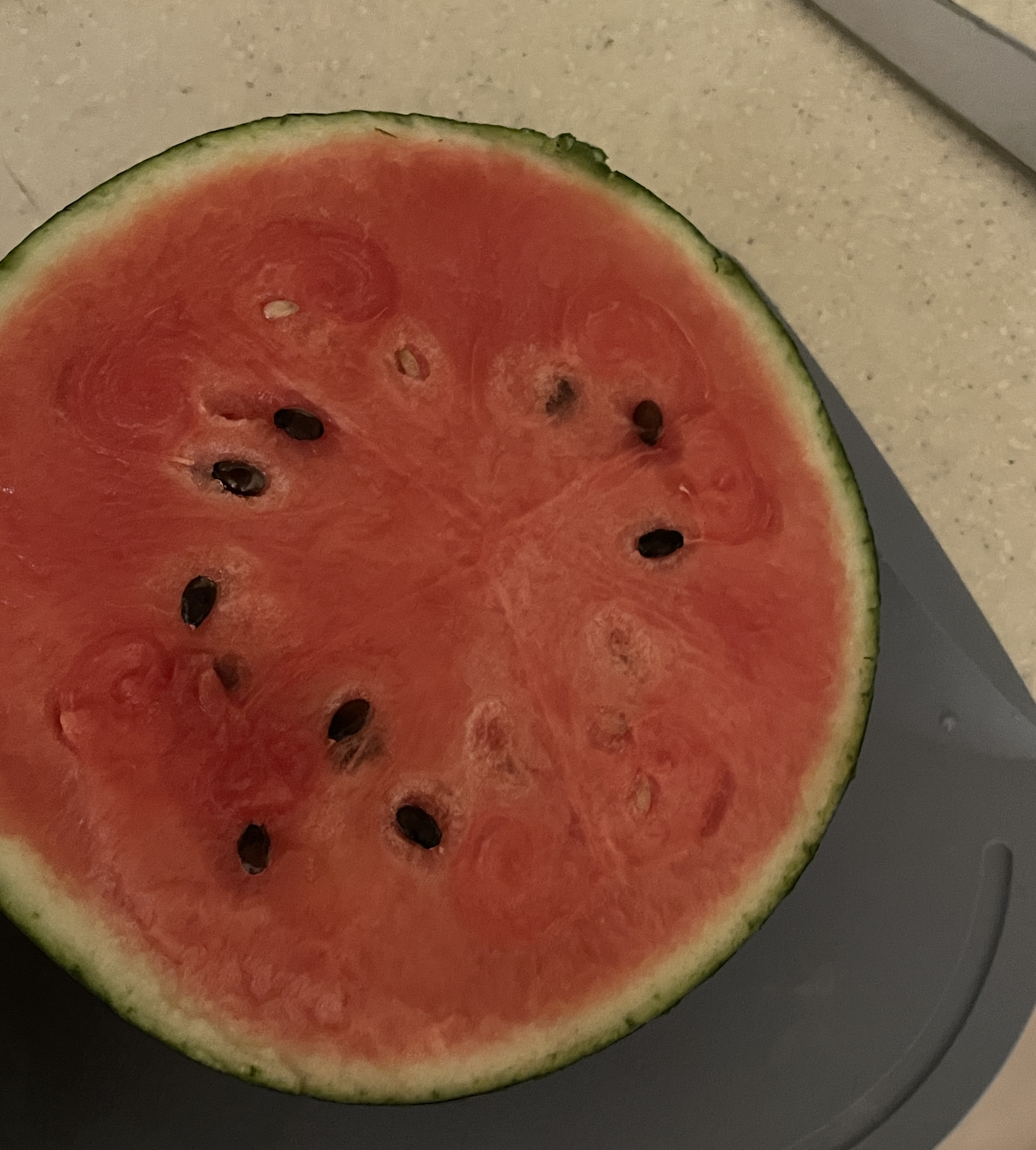 씨도 적당히 있고, 색도 붉고, 껍질도 얇고, 완벽한 수박을 뽑은 것 같네요.