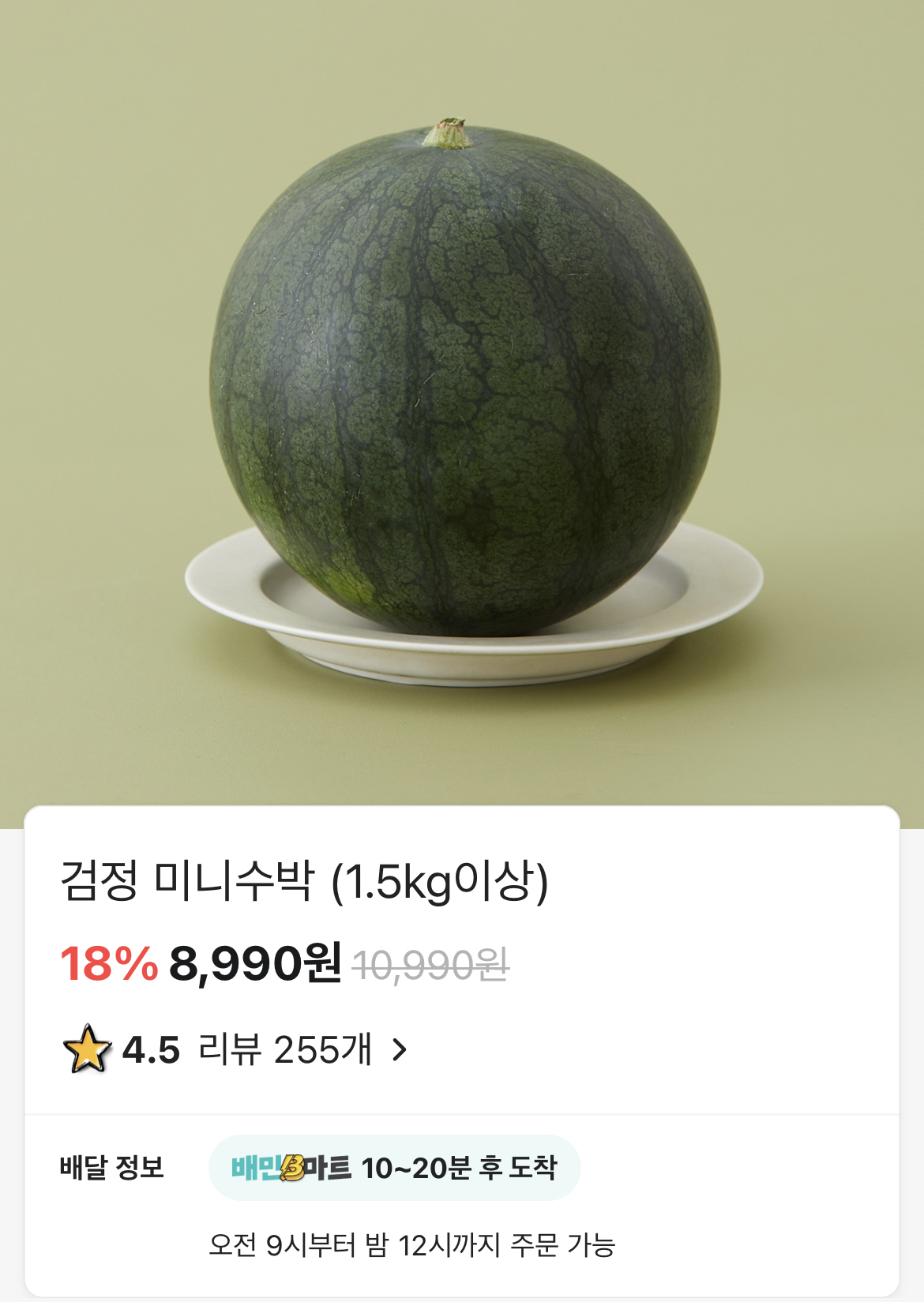 배민 비마트에서 파는 검정 미니수박! 1.5kg 이상 이라고 나와있고요.
