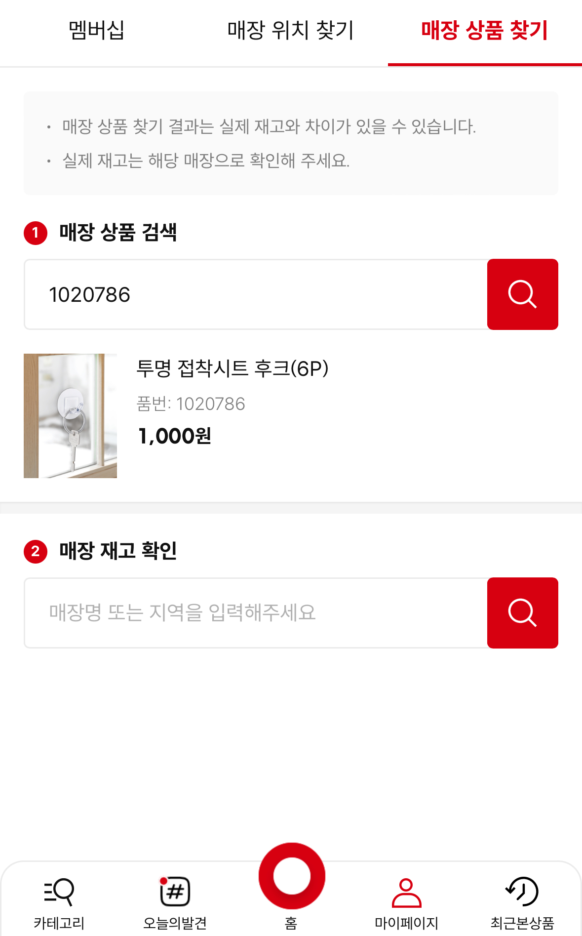 그러면 재고 현황이랑 몇 번 섹션에 있는지 구역도 함께 안내해줍니다.