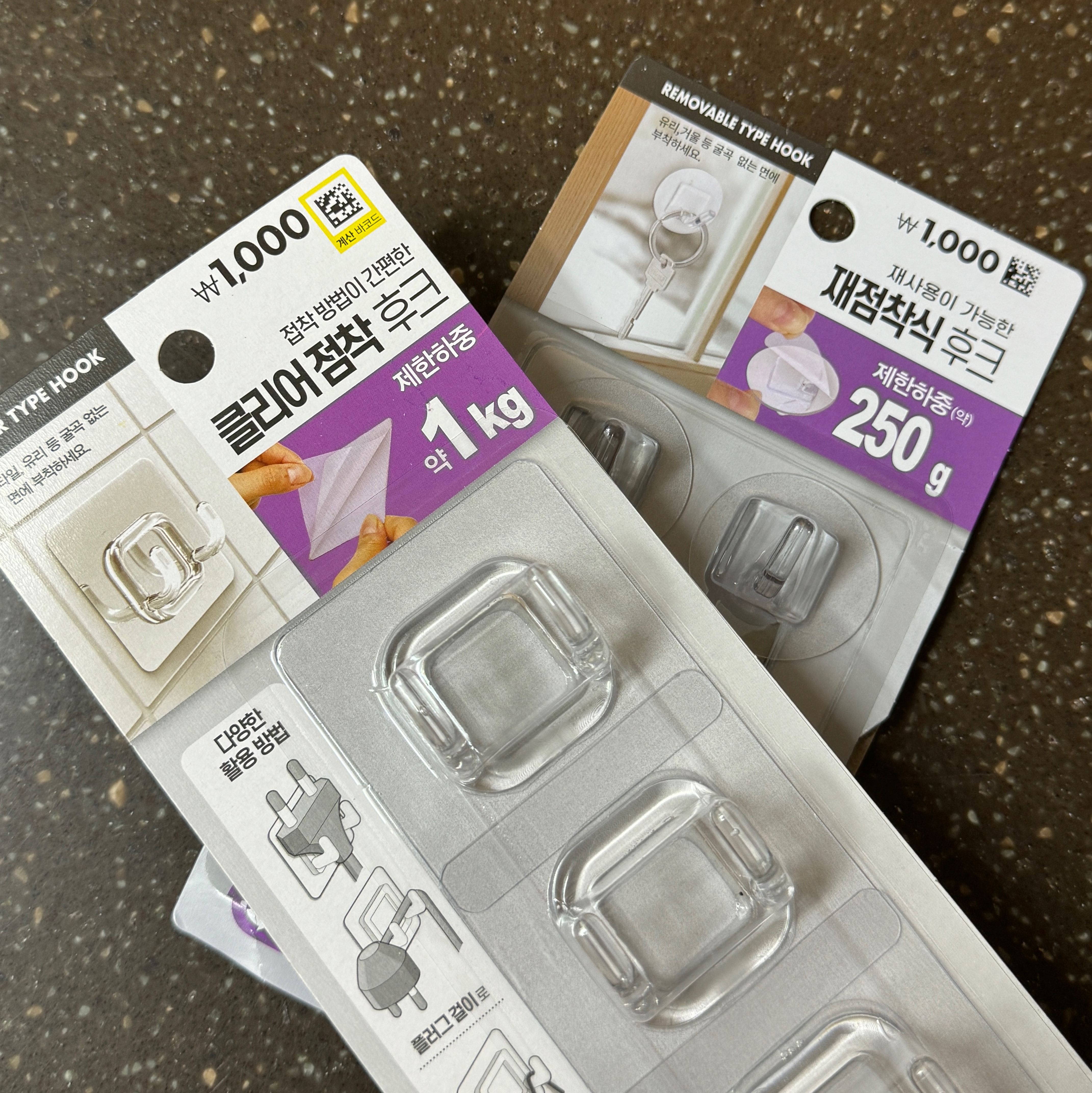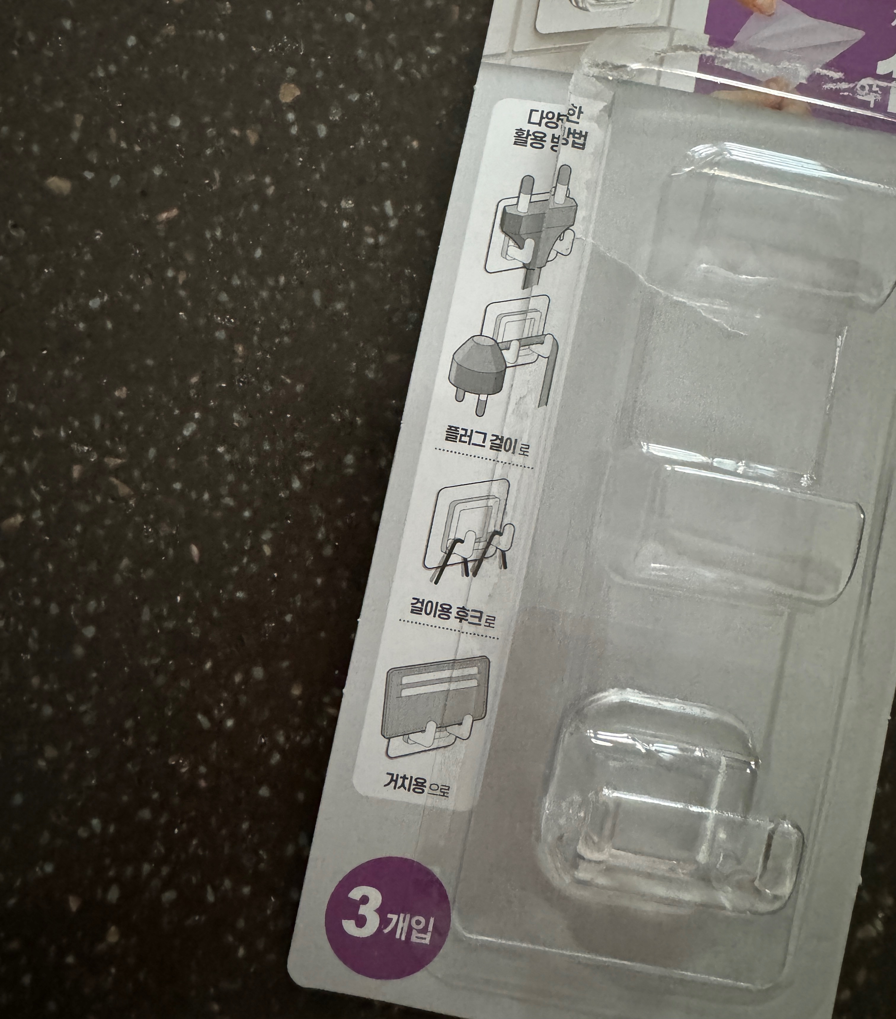일단 클리어 점착식 후크 3개 들어있는 제품은,