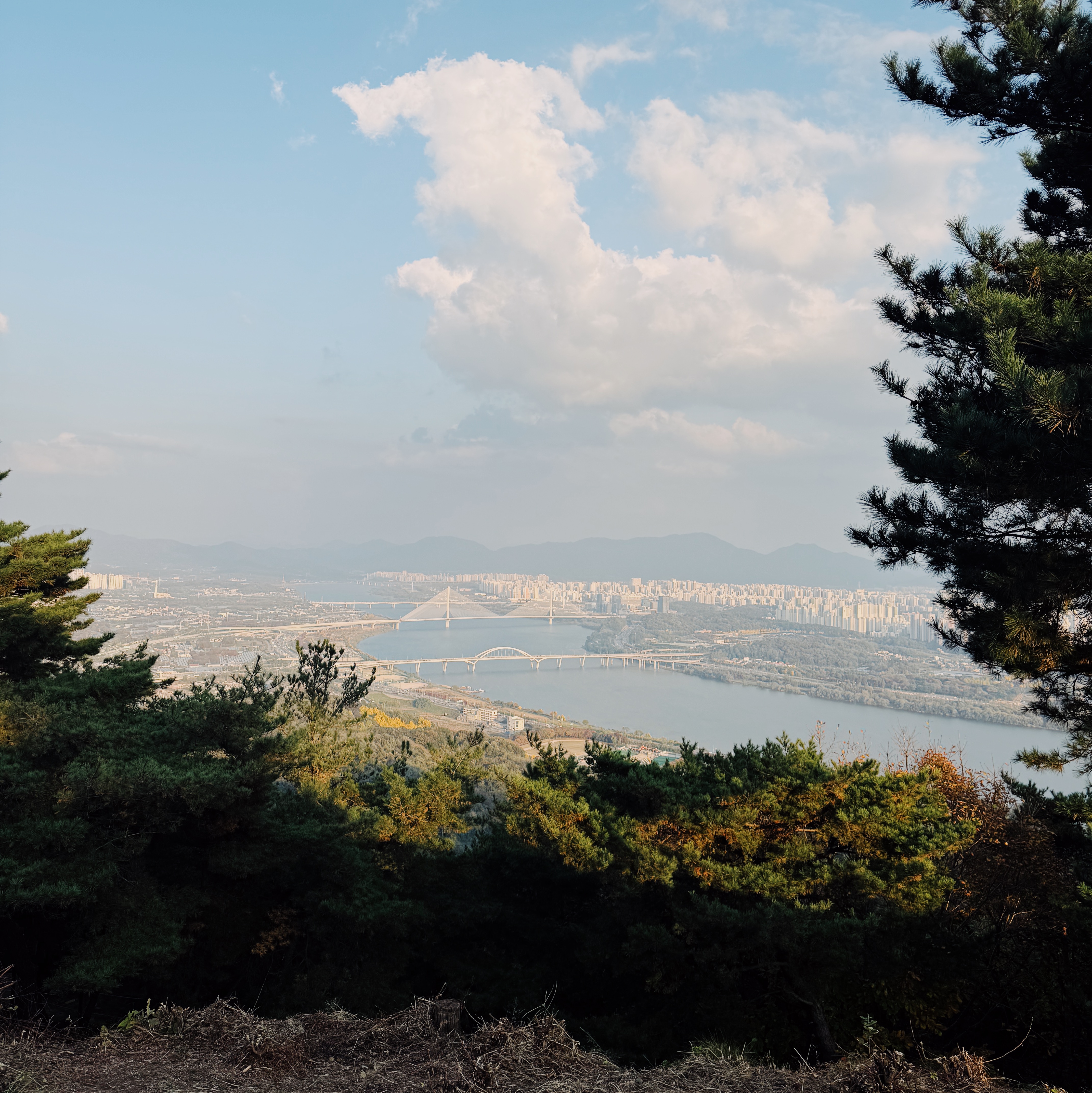 언덕에 올라 이 뷰를 보면 거의 아차산 정상에 다 왔다고 보면 되죠.
