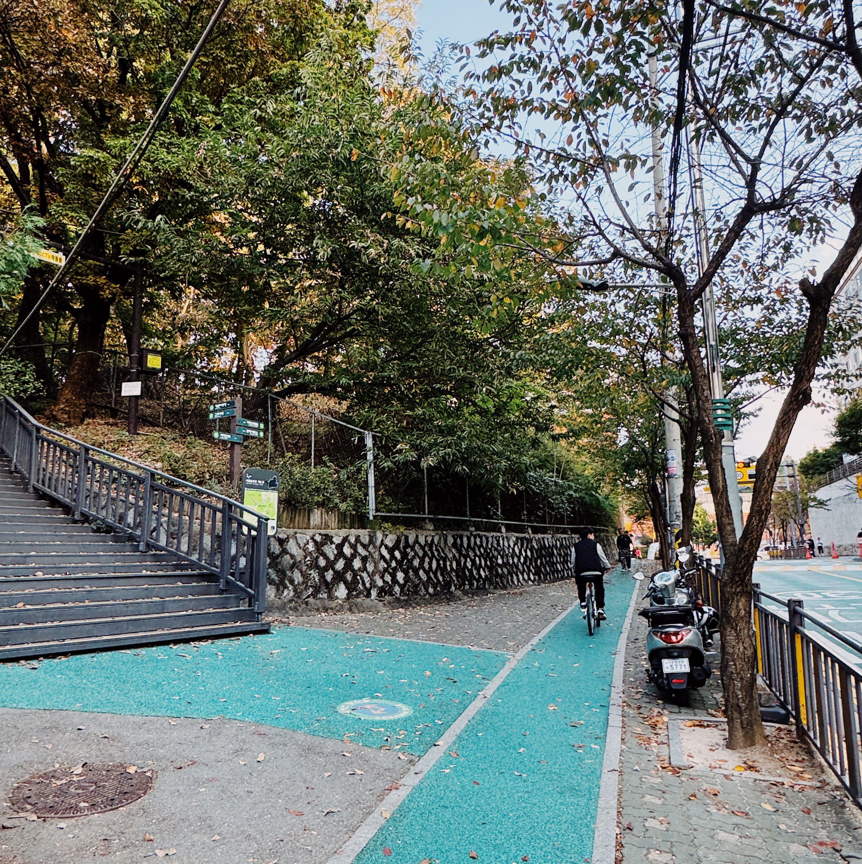 그 방향으로 쭉 가시다보면 학교 가기 전에 왼쪽에 이런 계단이 보이실거에요.