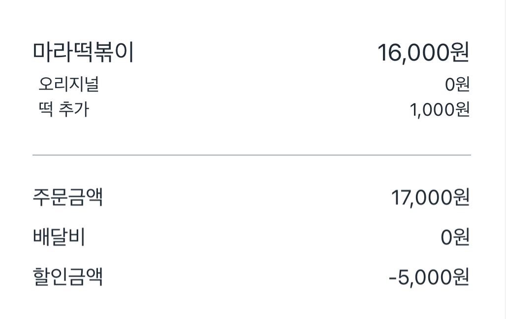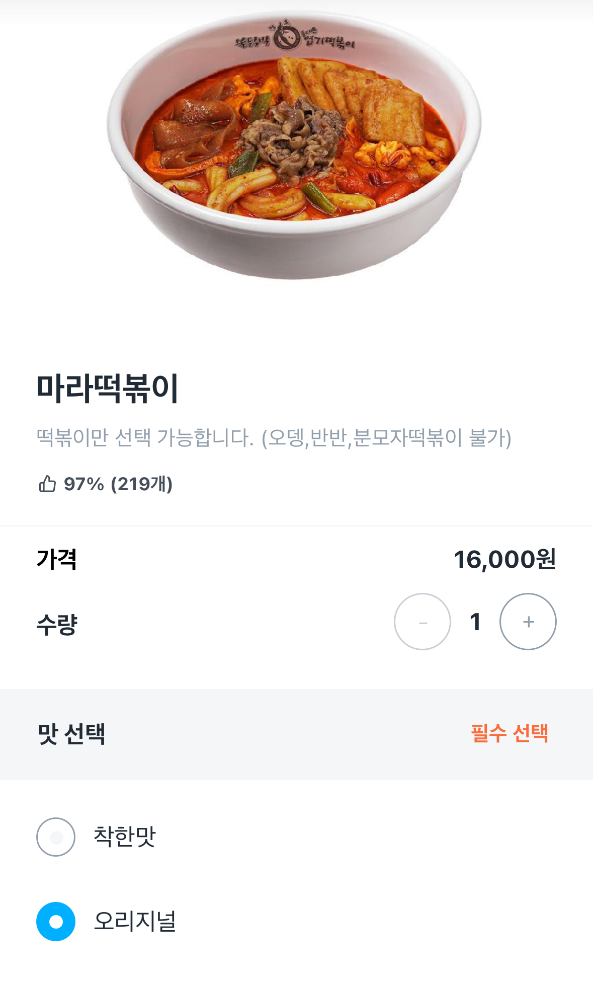 마라떡볶이 오리지널 맵기로 샌택했습니다.