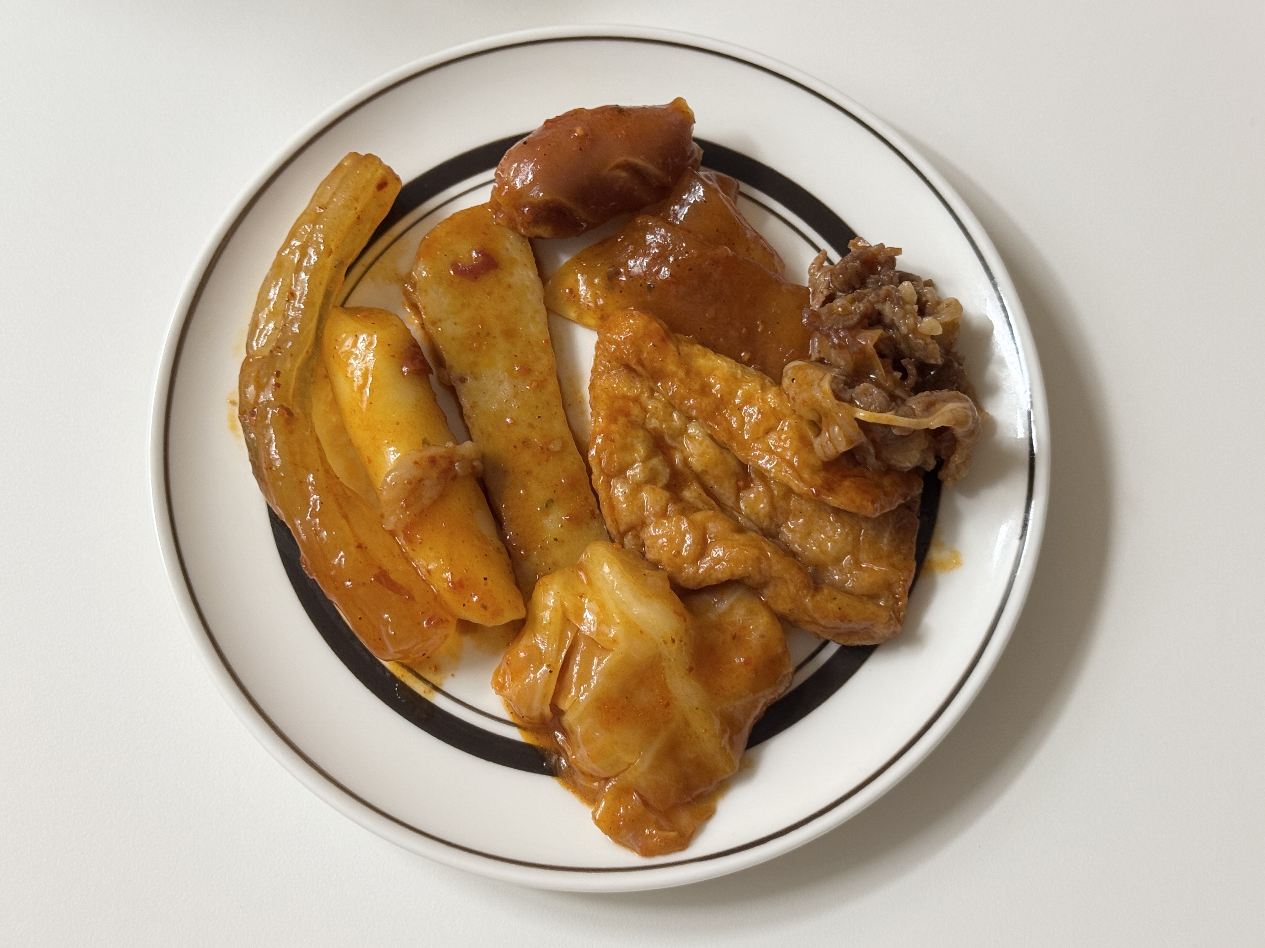 떡, 분모자, 어묵, 양배추, 중국당면, 소세지, 유부, 우삼겹