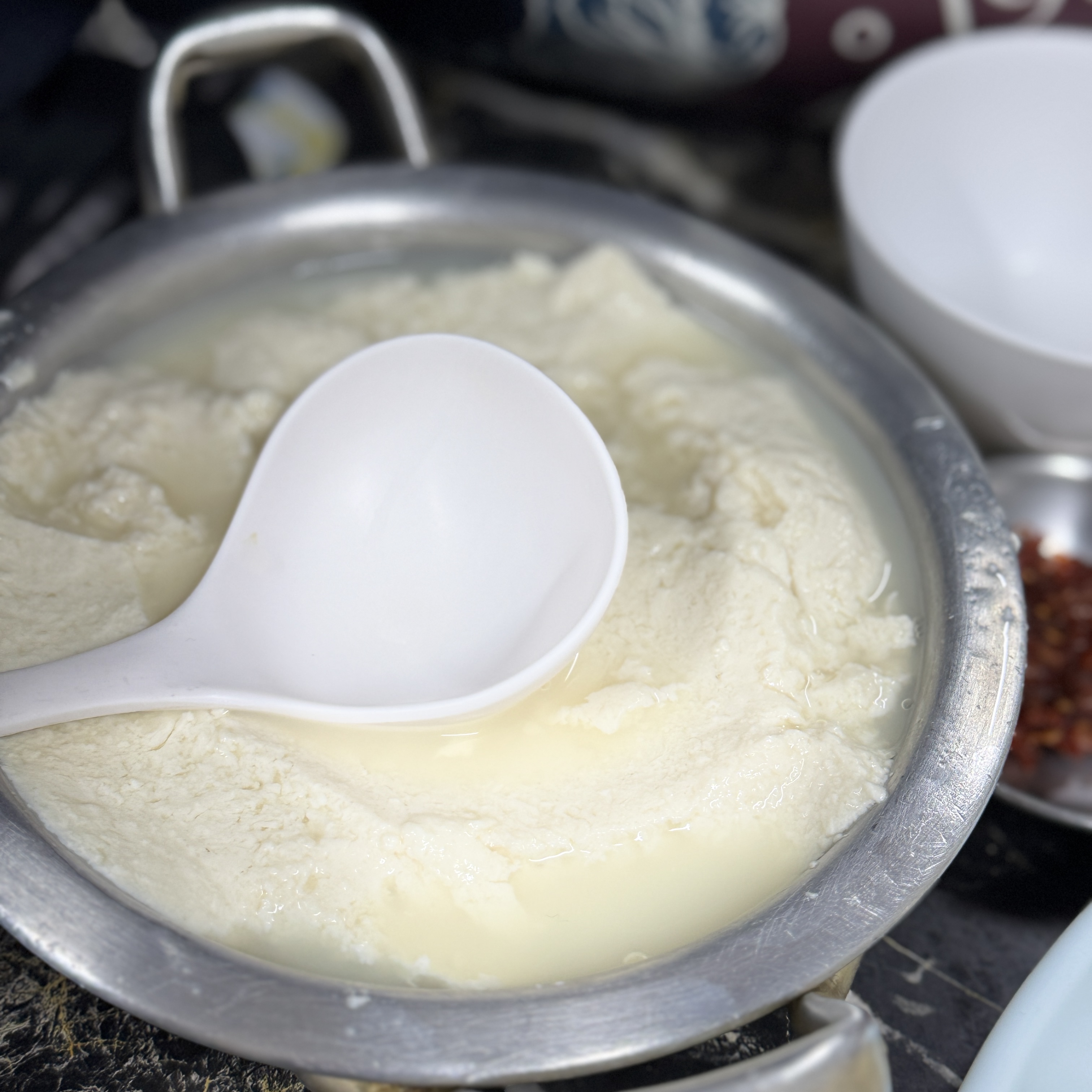 열심히 두부가 만들어지고 있는 중.