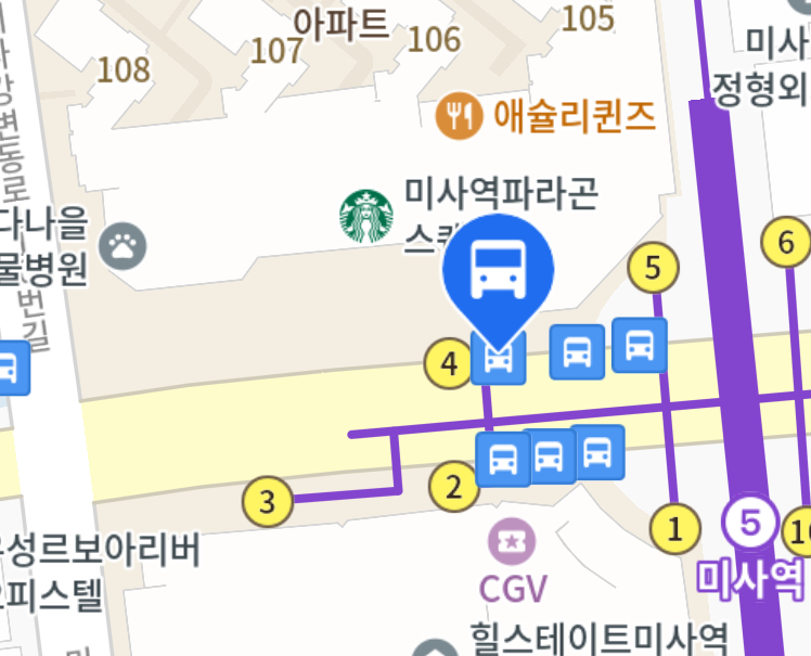 미사역 4번 출구 쪽에 8849 버스정거장이 있습니다.