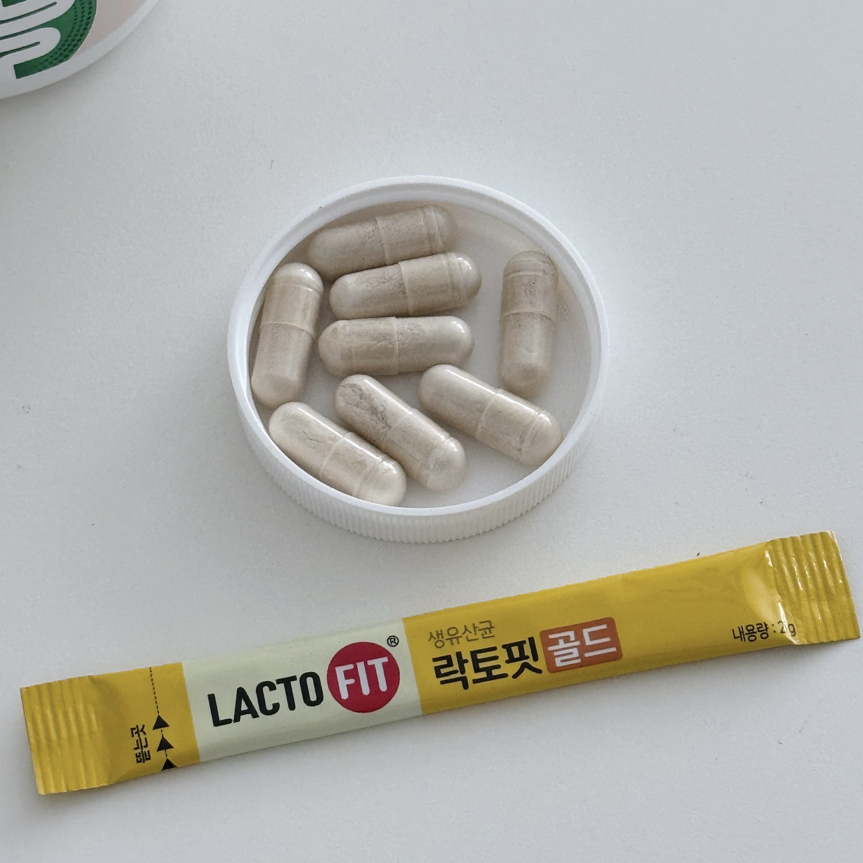 락토핏골드 유산균과 재로우 사카로미세스 조합이에요.