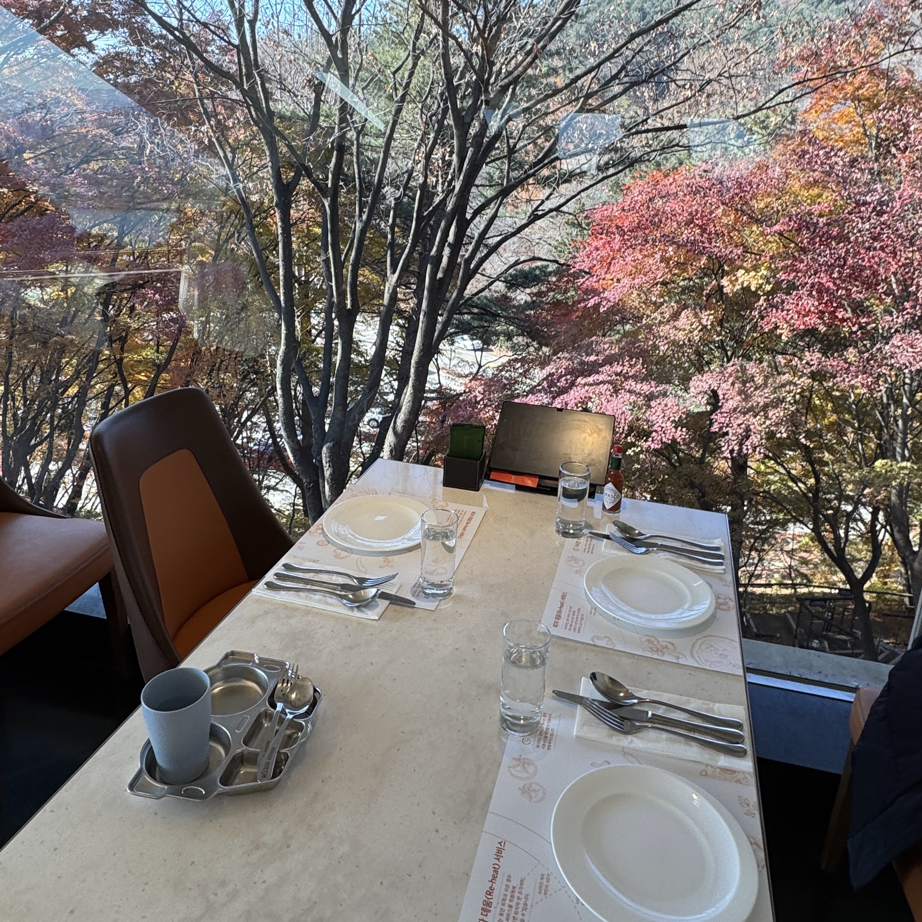 가을가을 예쁜 단풍이 보이는 창가자리로 배정 받았어요.