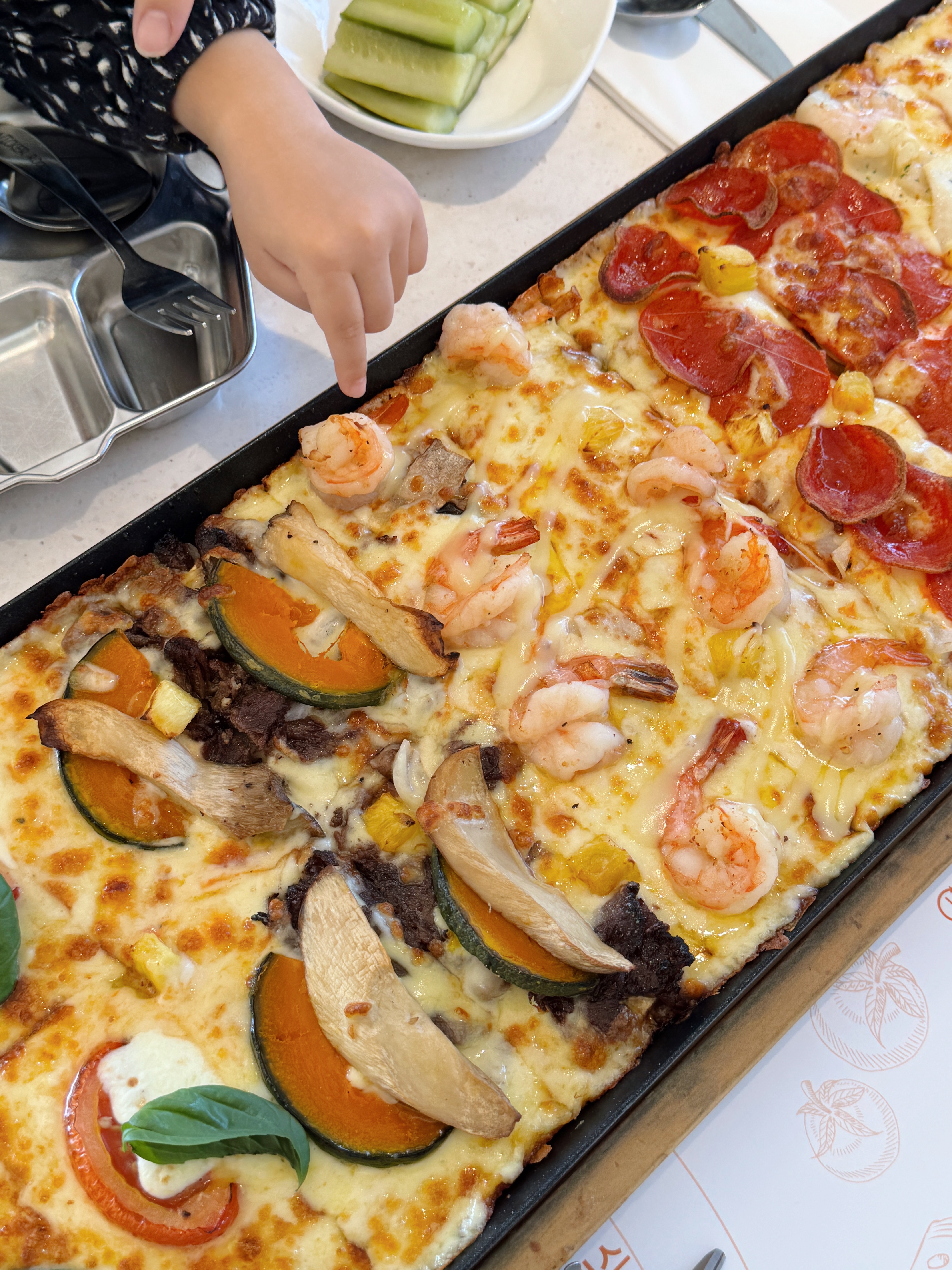한치? 오징어가 들어간 해산물피자, 콤비네이션피자.