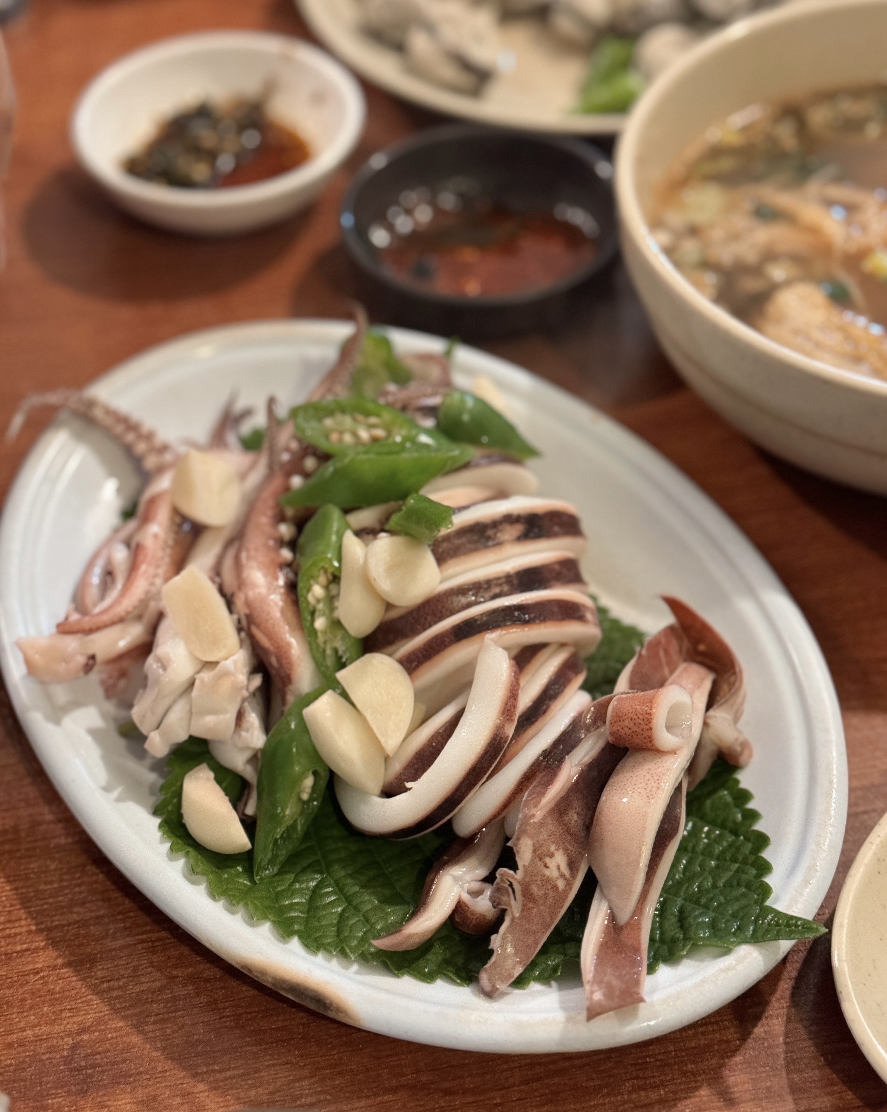 따끈한 잔치국수와 꼬막, 신선한 석화, 그리고 꼭 먹어야 하는 오징어 숙회까지.