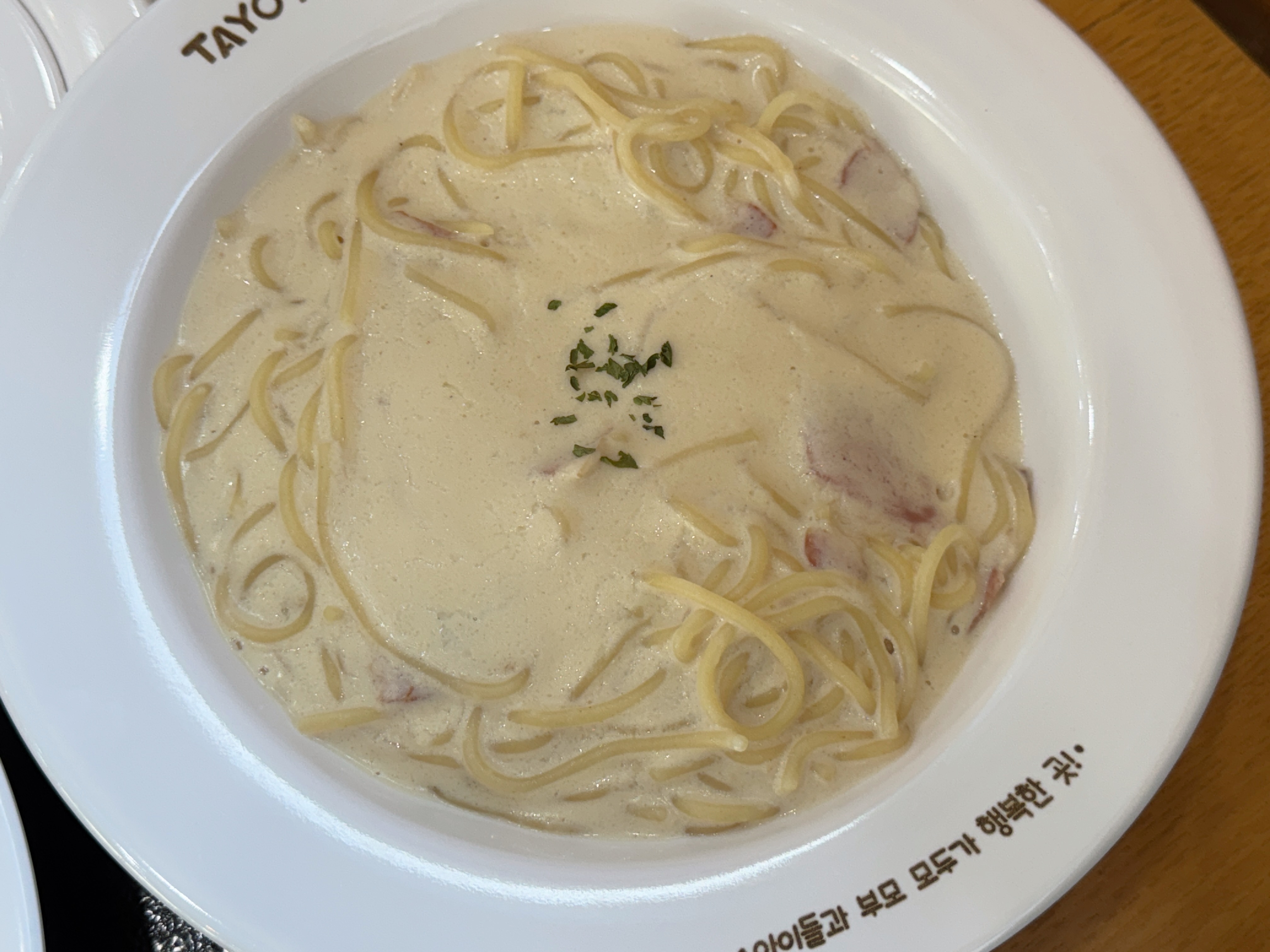 편의점에서 파는 스파게티 맛이랄까.. 크림 소스가 너무 묽고 파스타면 자체도 맛이 없었어요.