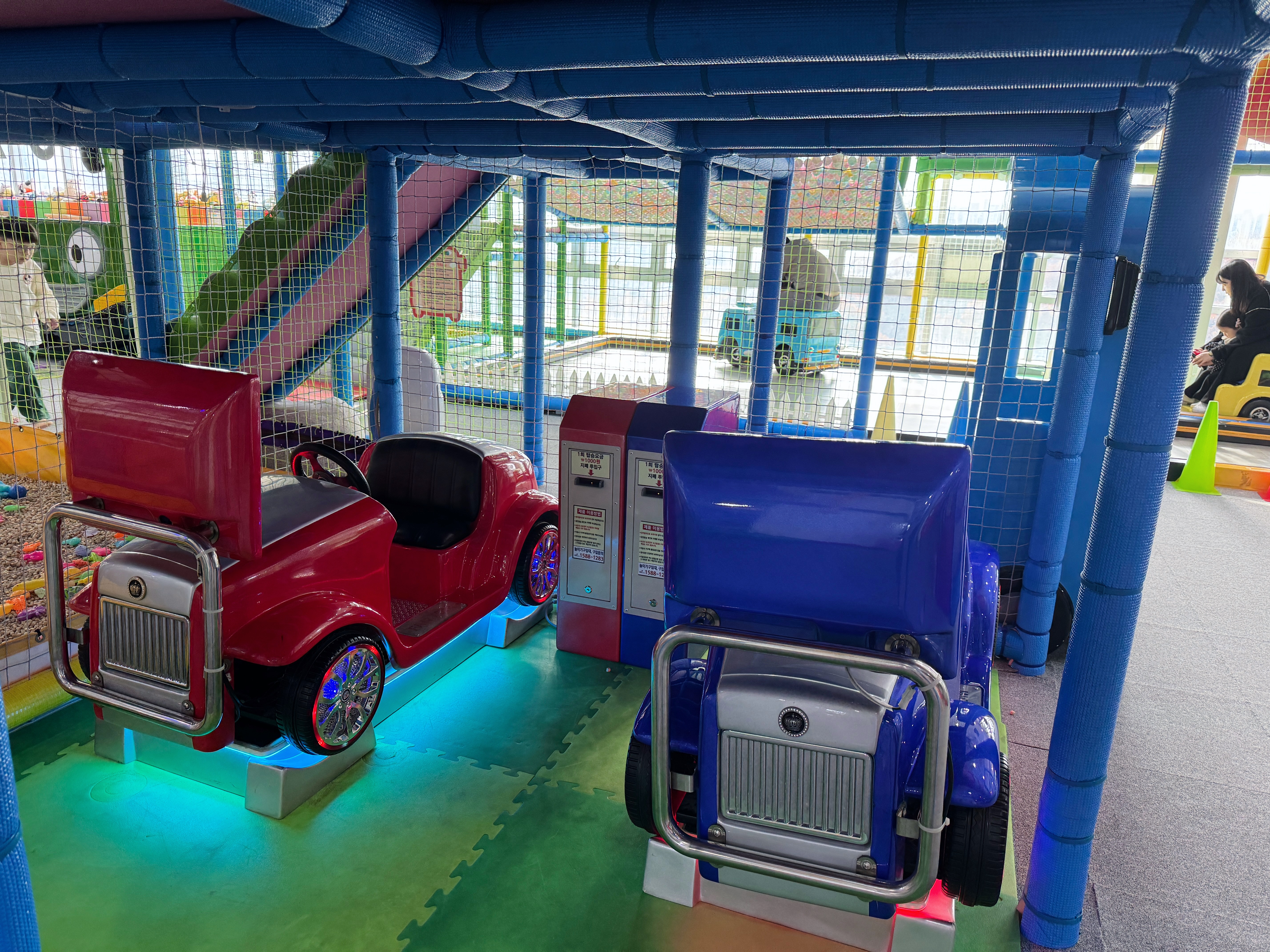 이 곳의 최고 인기 시설! 아이들이 직접 타요 전기자동차를 운전할 수 있어요.
