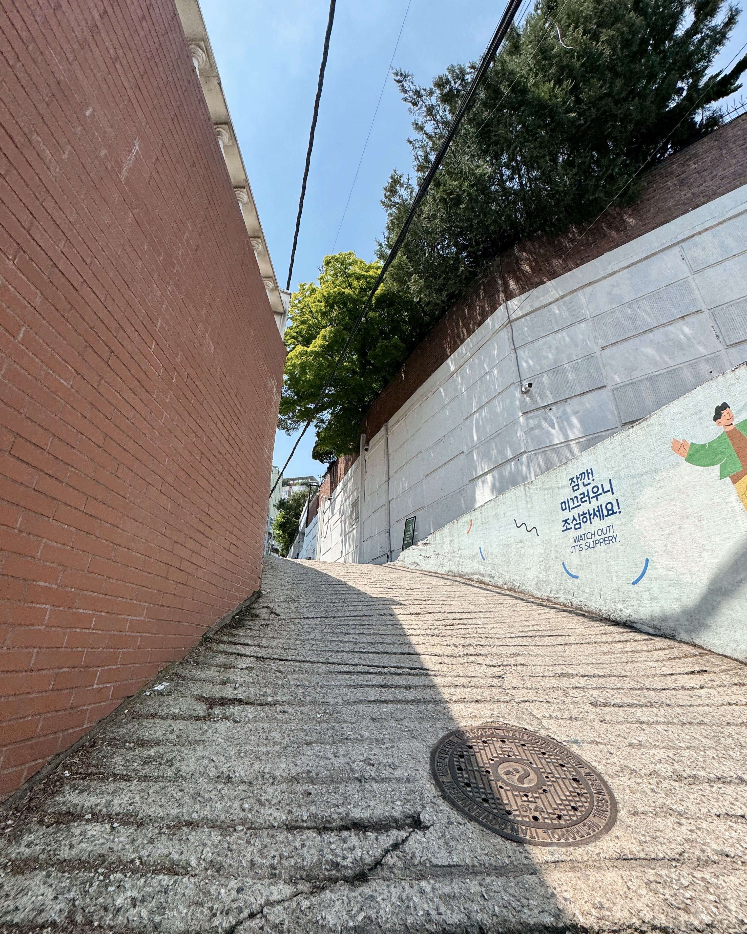 이렇게 언덕이 있고, 저기 오른쪽에 계단이 있으니 계단 이용하세요.