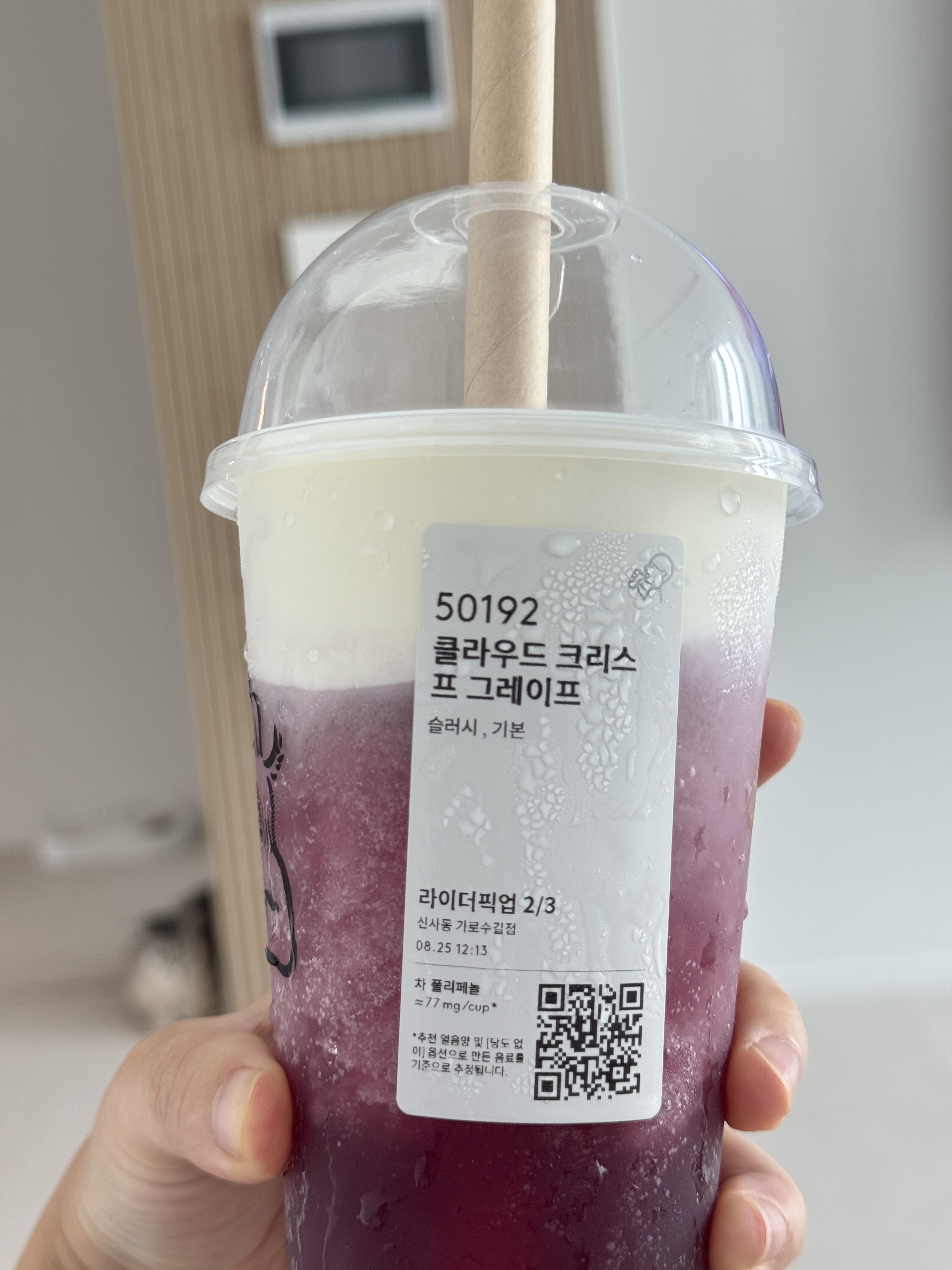 슬러시 형태라 얼음 입자가 살아 있고, 첫맛부터 포도의 상큼함이 확 느껴져요.