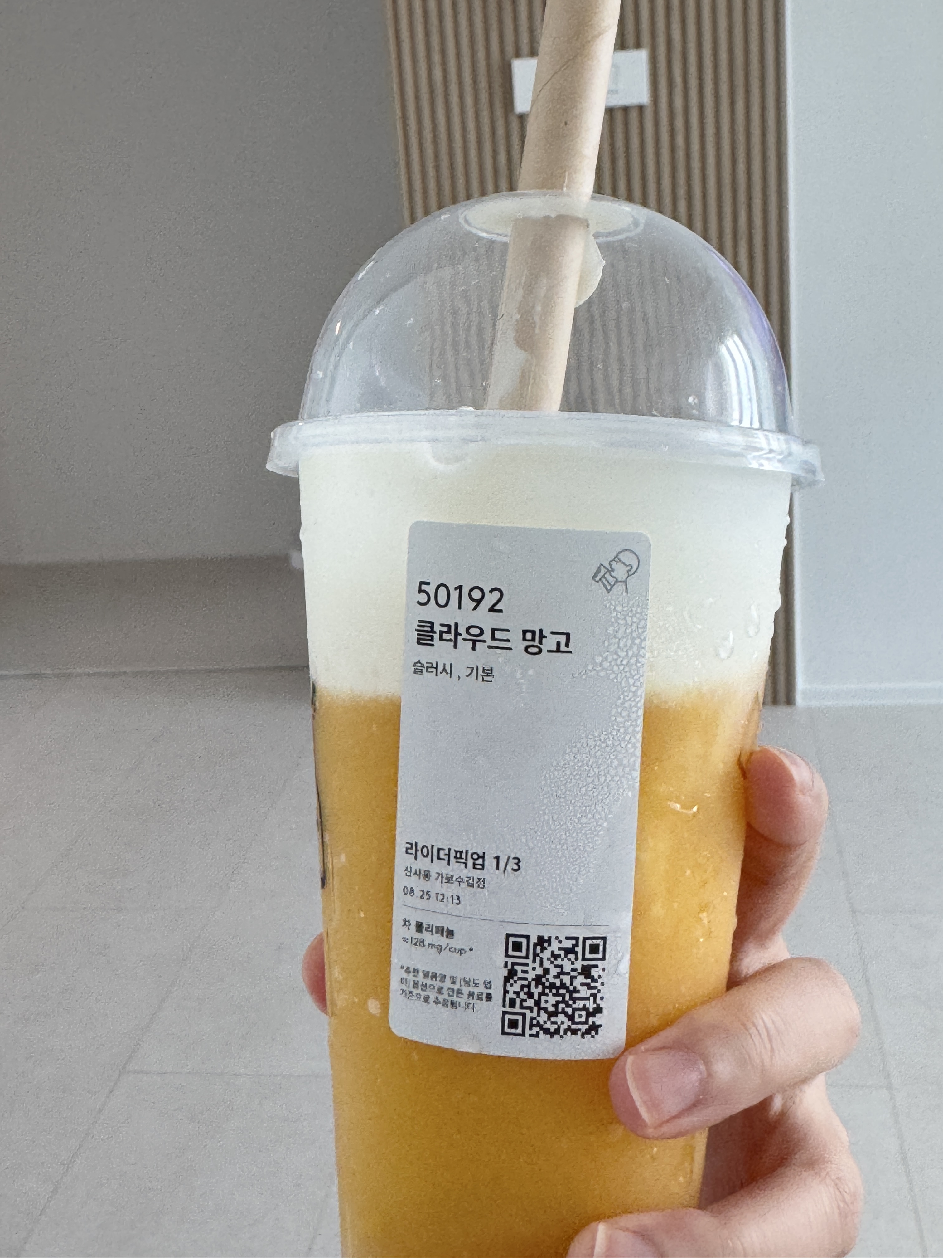 한입 마시자마자 망고향이 팡팡 터지고, 슬러시의 시원함이 딱이에요.