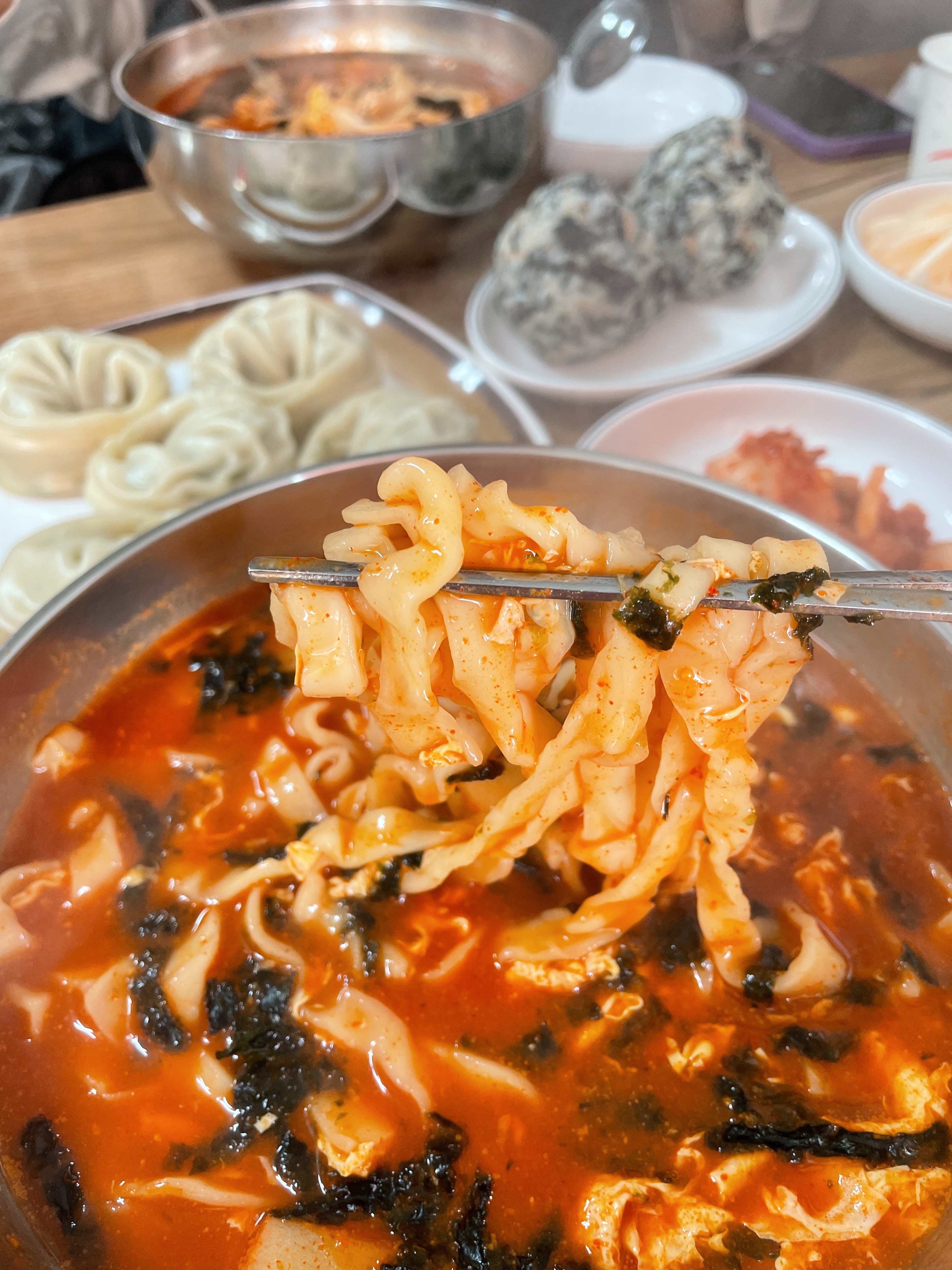 장칼집 칼국수 자체가 칼칼하고 뜨겁고 맵고 그래서 후루룩 마셔버리고 나올 수 있는 음식이 아니에요..